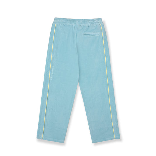 THE SWARM DC SHOES X GRIMEY VELVET TRACK PANTS WIDE LEG BLUE