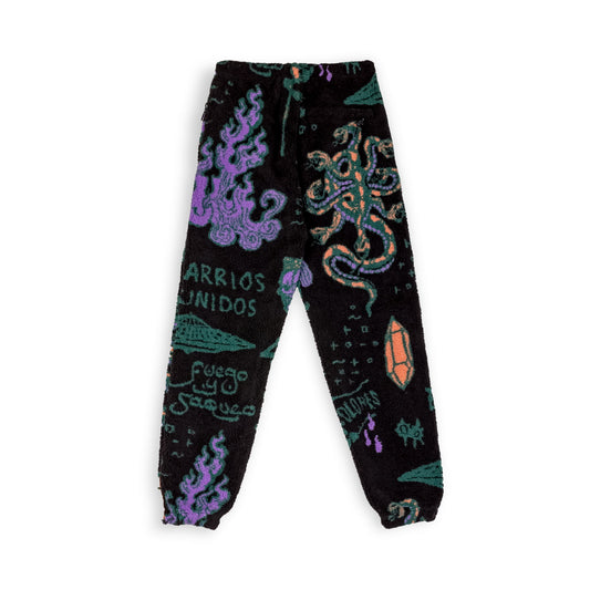 GRIMEY LOST BOYS ALL OVER JACQUARD SHERPA PANTS BLACK